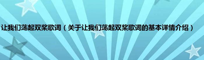 本文关于让我们荡起双桨歌词的基本详情介绍就讲解完毕,希望对大家有所帮助。
