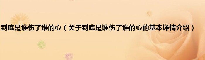 本文关于到底是谁伤了谁的心的基本详情介绍就讲解完毕,希望对大家有所帮助。