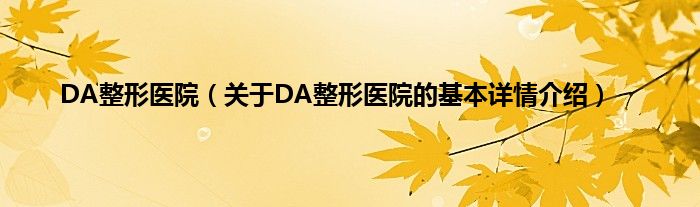 本文关于DA整形医院的基本详情介绍就讲解完毕,希望对大家有所帮助。