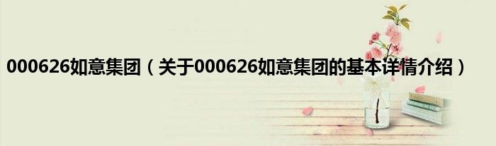 本文关于000626如意集团的基本详情介绍就讲解完毕,希望对大家有所帮助。