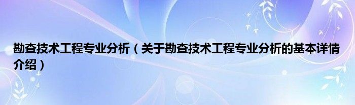 本文关于勘查技术工程专业分析的基本详情介绍就讲解完毕,希望对大家有所帮助。