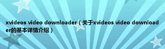 本文关于xvideos video downloader的基本详情介绍就讲解完毕,希望对大家有所帮助。