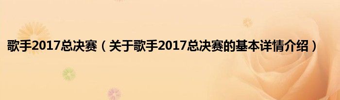 本文关于歌手2017总决赛的基本详情介绍就讲解完毕,希望对大家有所帮助。