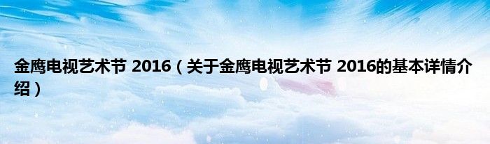 金鹰电视艺术节 2016(关于金鹰电视艺术节 2016的基本详情介绍)