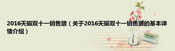 本文关于2016天猫双十一销售额的基本详情介绍就讲解完毕,希望对大家有所帮助。