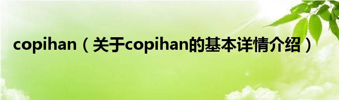 本文关于copihan的基本详情介绍就讲解完毕,希望对大家有所帮助。