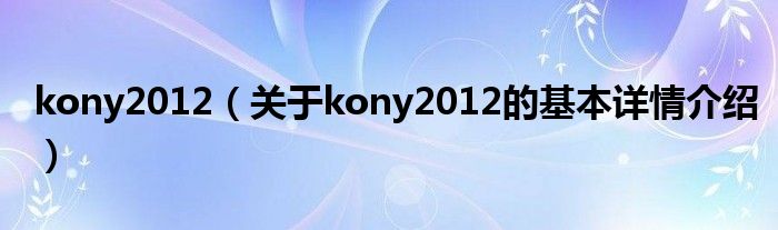 本文关于kony2012的基本详情介绍就讲解完毕,希望对大家有所帮助。