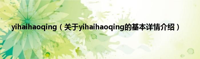 yihaihaoqing(关于yihaihaoqing的基本详情介绍)