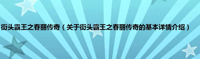 本文关于街头霸王之春丽传奇的基本详情介绍就讲解完毕,希望对大家有所帮助。