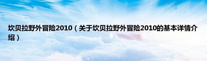 本文关于坎贝拉野外冒险2010的基本详情介绍就讲解完毕,希望对大家有所帮助。