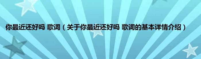 你最近还好吗歌词(关于你最近还好吗歌词的基本详情介绍)