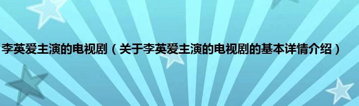 本文关于李英爱主演的电视剧的基本详情介绍就讲解完毕,希望对大家有所帮助。