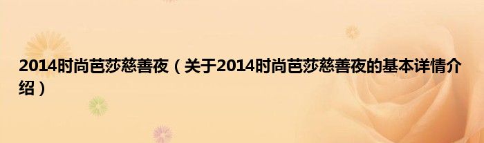 本文关于2014时尚芭莎慈善夜的基本详情介绍就讲解完毕,希望对大家有所帮助。