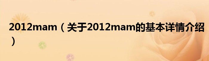 本文关于2012mam的基本详情介绍就讲解完毕,希望对大家有所帮助。