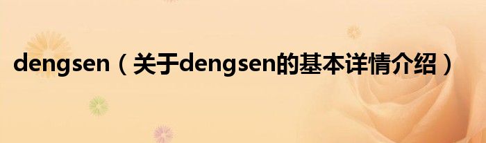 本文关于dengsen的基本详情介绍就讲解完毕,希望对大家有所帮助。