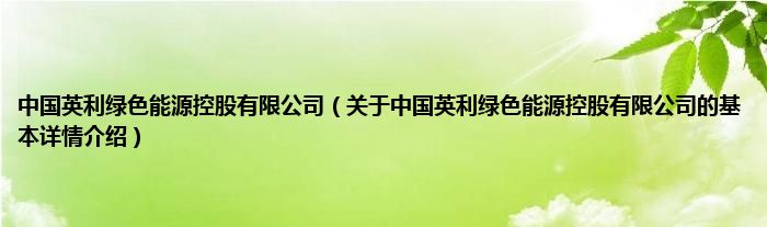 本文关于中国英利绿色能源控股有限公司的基本详情介绍就讲解完毕,希望对大家有所帮助。