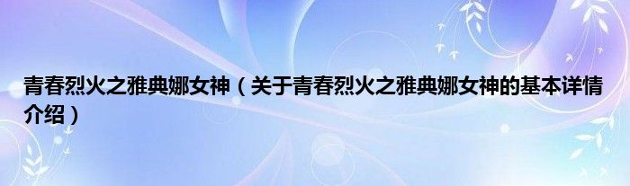 本文关于青春烈火之雅典娜女神的基本详情介绍就讲解完毕,希望对大家有所帮助。