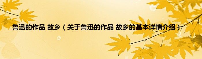 本文关于鲁迅的作品 故乡的基本详情介绍就讲解完毕,希望对大家有所帮助。