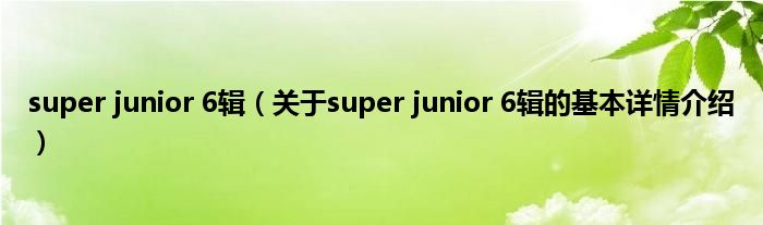 本文关于super junior 6辑的基本详情介绍就讲解完毕,希望对大家有所帮助。