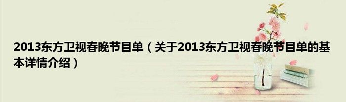 本文关于2013东方卫视春晚节目单的基本详情介绍就讲解完毕,希望对大家有所帮助。