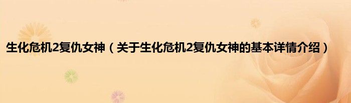 生化危机2复仇女神(关于生化危机2复仇女神的基本详情介绍)
