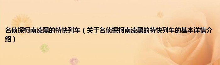 名侦探柯南漆黑的特快列车(关于名侦探柯南漆黑的特快列车的基本详情介绍)