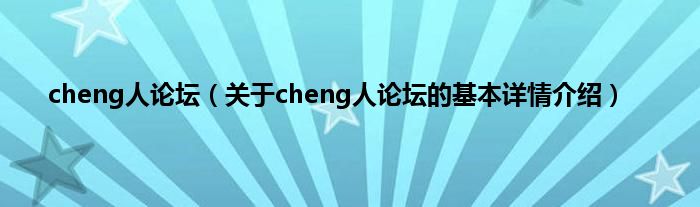 cheng人论坛(关于cheng人论坛的基本详情介绍)