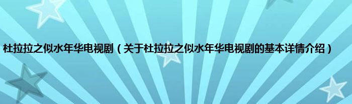 本文关于杜拉拉之似水年华电视剧的基本详情介绍就讲解完毕,希望对大家有所帮助。