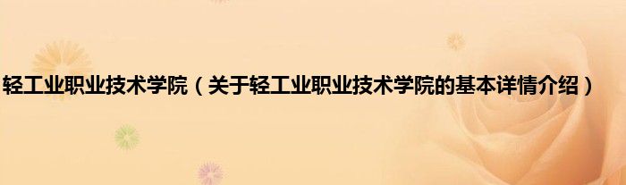 本文关于轻工业职业技术学院的基本详情介绍就讲解完毕,希望对大家有所帮助。