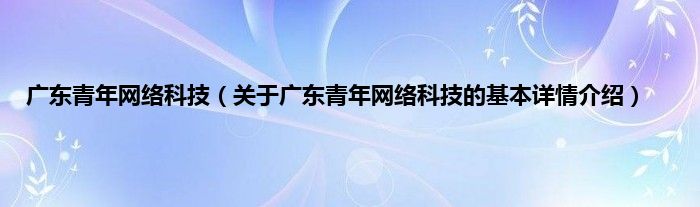 广东青年网络科技(关于广东青年网络科技的基本详情介绍)