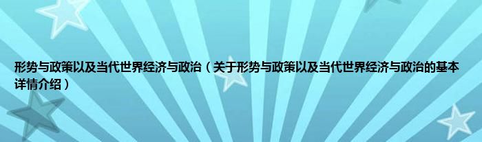 本文关于形势与政策以及当代世界经济与政治的基本详情介绍就讲解完毕,希望对大家有所帮助。