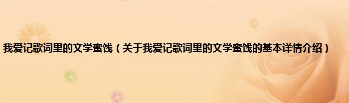 本文关于我爱记歌词里的文学蜜饯的基本详情介绍就讲解完毕,希望对大家有所帮助。