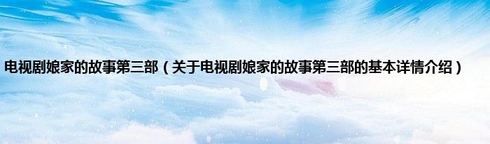 本文关于电视剧娘家的故事第三部的基本详情介绍就讲解完毕,希望对大家有所帮助。