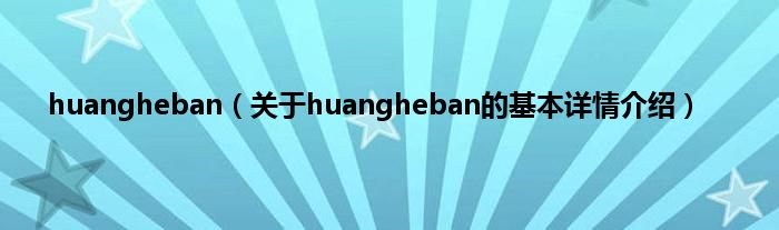 huangheban(关于huangheban的基本详情介绍)