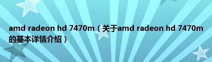 amdradeonhd7470m(关于amdradeonhd7470m的基本详情...