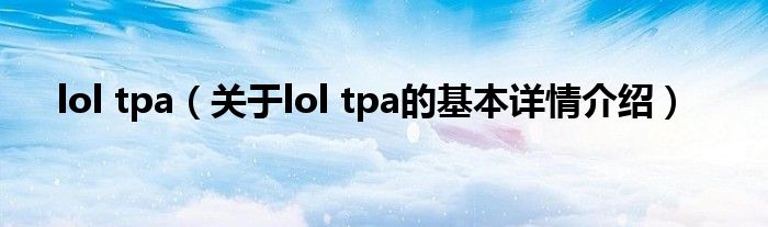 大家好我是小蝌蚪,lol tpa,关于lol tpa的基本详情介绍很多人还不知道,那么现在让我们一起来看看吧!