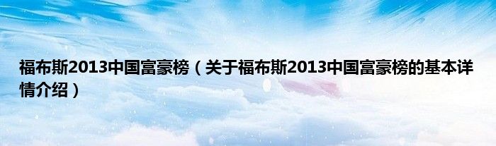 本文关于福布斯2013中国富豪榜的基本详情介绍就讲解完毕,希望对大家有所帮助。