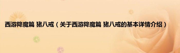 西游降魔篇 猪八戒(关于西游降魔篇 猪八戒的基本详情介绍)