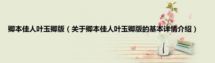 本文关于卿本佳人叶玉卿版的基本详情介绍就讲解完毕,希望对大家有所帮助。