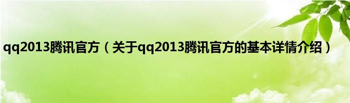 本文关于qq2013腾讯官方的基本详情介绍就讲解完毕,希望对大家有所帮助。