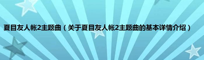 本文关于夏目友人帐2主题曲的基本详情介绍就讲解完毕,希望对大家有所帮助。