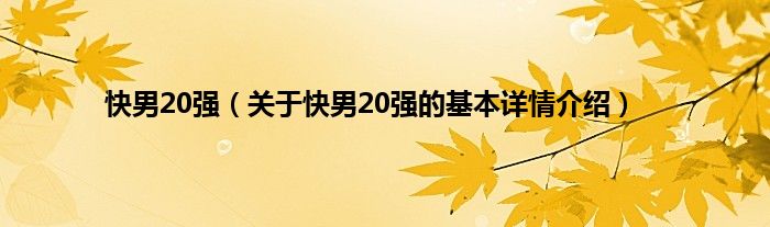 本文关于快男20强的基本详情介绍就讲解完毕,希望对大家有所帮助。