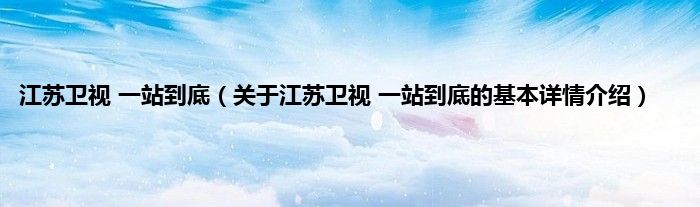 本文关于江苏卫视 一站到底的基本详情介绍就讲解完毕,希望对大家有所帮助。