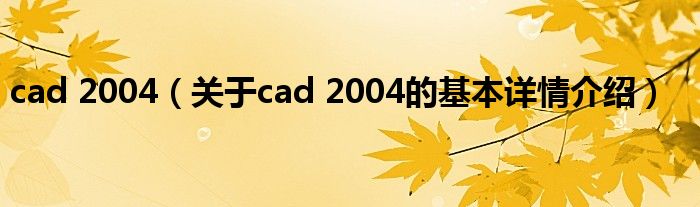 本文关于cad 2004的基本详情介绍就讲解完毕,希望对大家有所帮助。