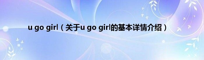 u go girl(关于u go girl的基本详情介绍)