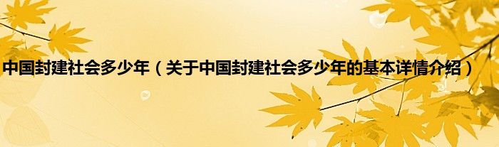 本文关于中国封建社会多少年的基本详情介绍就讲解完毕,希望对大家有所帮助。