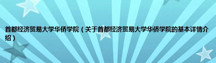 本文关于首都经济贸易大学华侨学院的基本详情介绍就讲解完毕,希望对大家有所帮助。