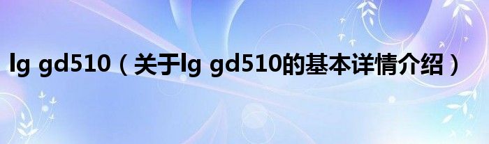 本文关于lg gd510的基本详情介绍就讲解完毕,希望对大家有所帮助。
