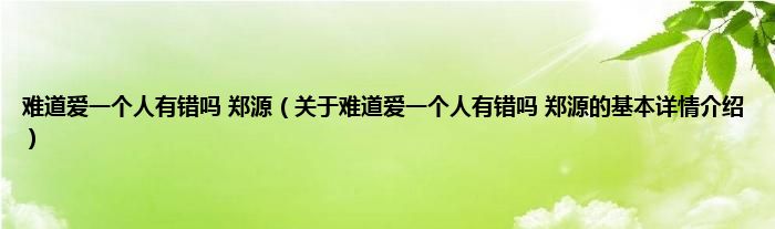 本文关于难道爱一个人有错吗 郑源的基本详情介绍就讲解完毕,希望对大家有所帮助。