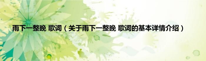 本文关于雨下一整晚 歌词的基本详情介绍就讲解完毕,希望对大家有所帮助。